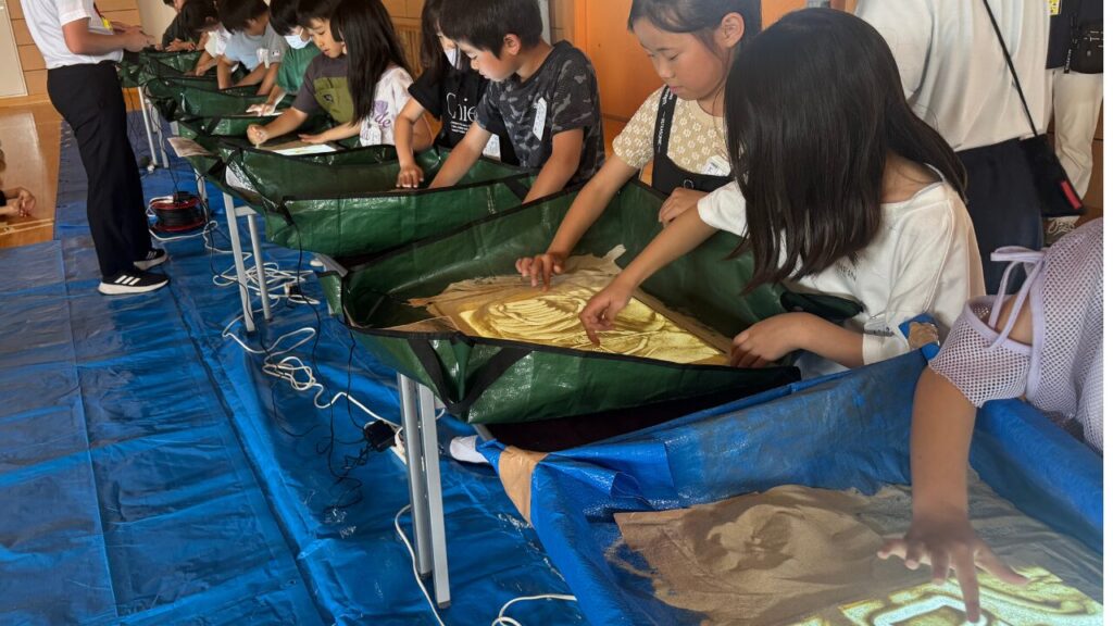 最初は少し緊張していた子も、サラサラとした砂の感触にすぐに夢中になり、驚くほどの集中力で自分だけの作品を完成させていました。