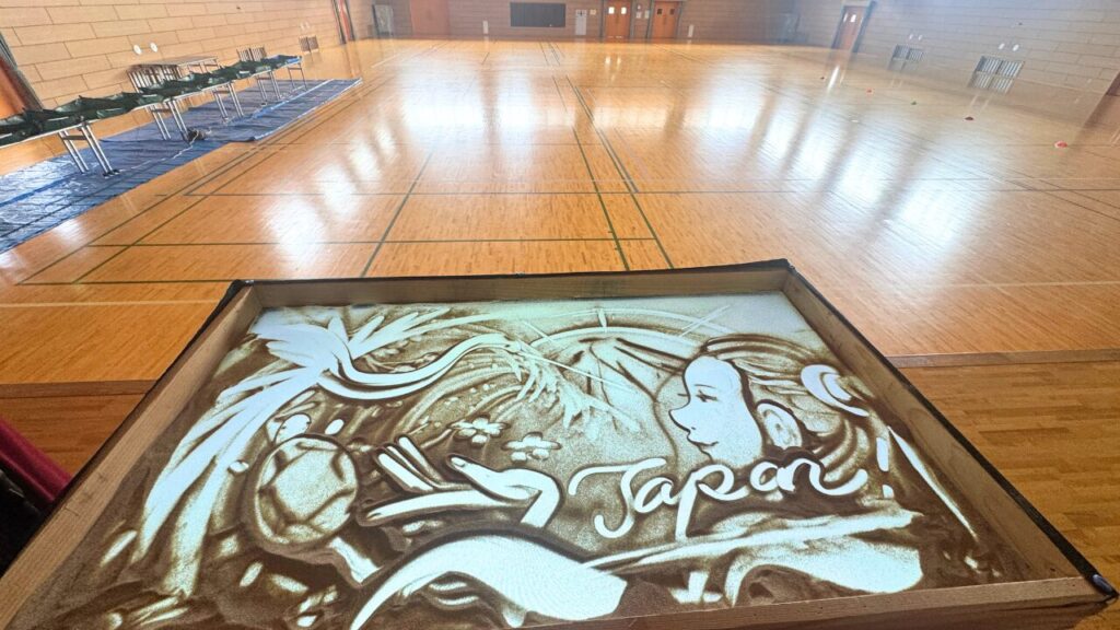 天候不問で楽しめるサンドアート体験。今回も子供たちの心を掴み、校長先生をはじめ、職員のみなさまやPTA役員の方からも喜ばれたのでほっと一安心でした。